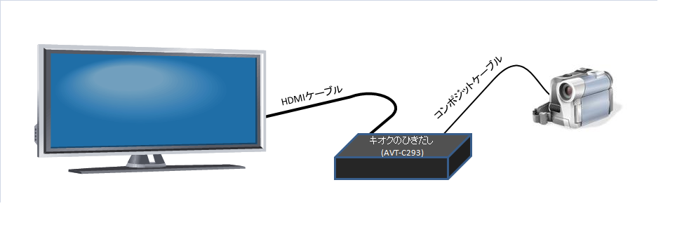 ただし、ビデオカメラをずっと接続しておくわけにはいかないので、コンポジットケーブルとビデオの接続のみを使用時にするようお願いしました。