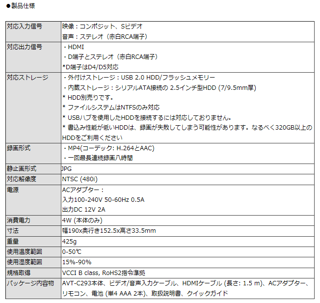 ちなみに、本機の販売元のサポートページには、対象機種にAVT-C293の記載がありません。