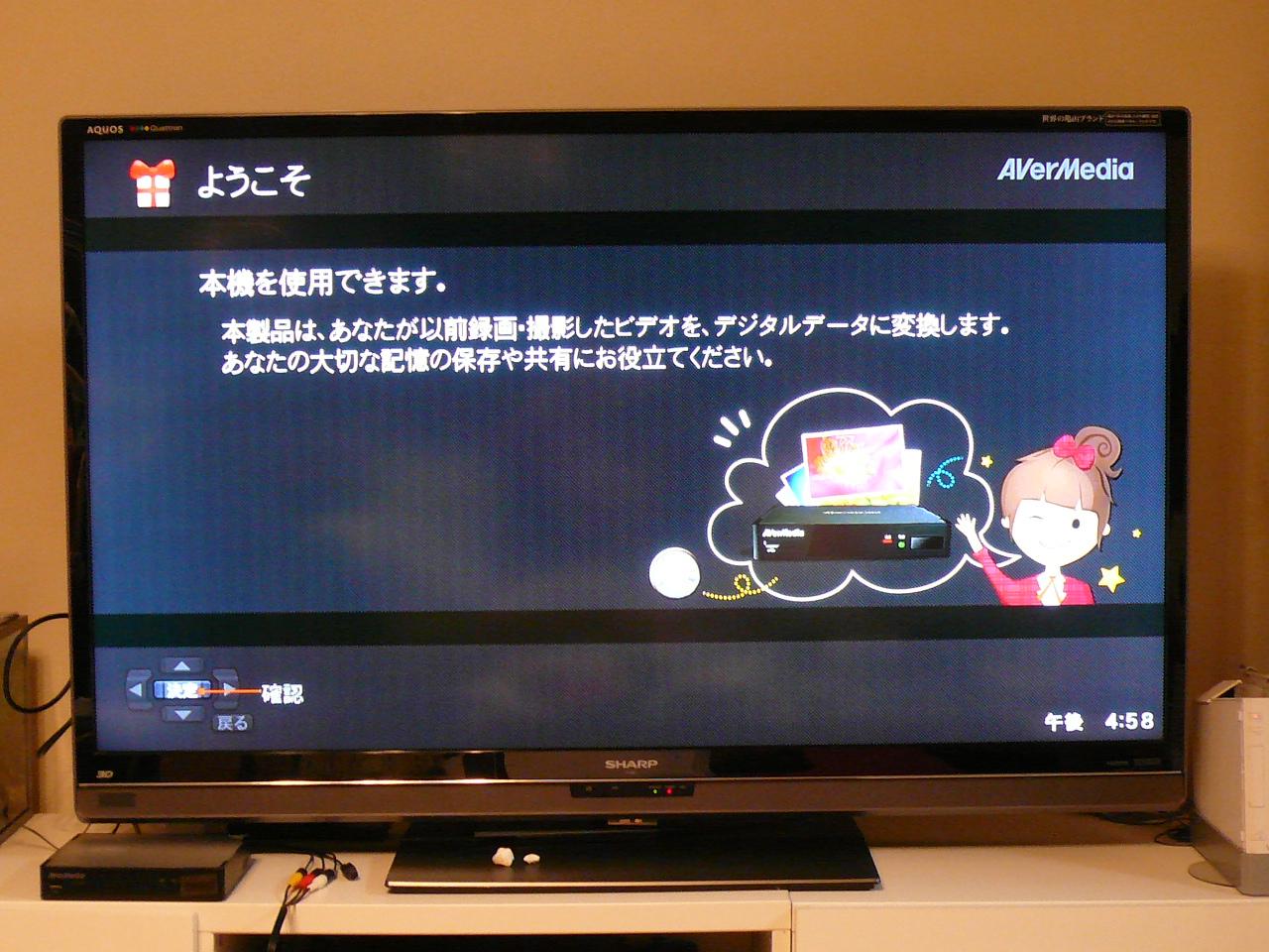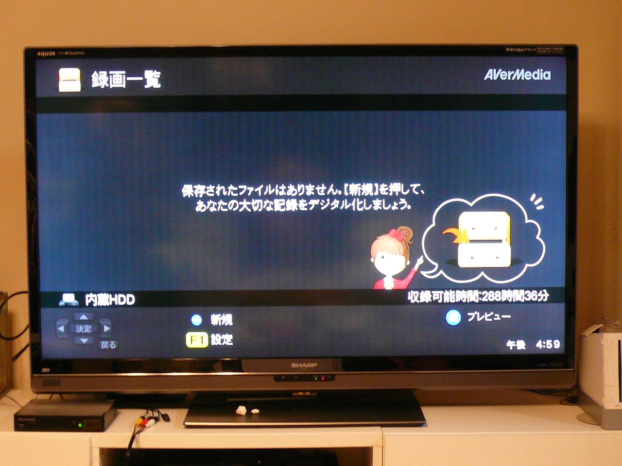 試しに、PCのディスプレイにHDMI接続してみたところ、きちんとビデオカメラの映像も表示され、HDDにキャプチャすることができました。単身赴任先のテレビ(↓)でもOKでした。