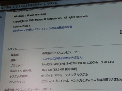 OS:Windows® 7 Home Premium 64ビットSP1