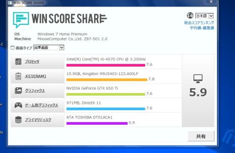 プライマリハードデスクが足をひっぱて「5.9」となっていますが、