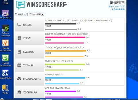 下の2枚の写真が WIN SCORE SHAREでの測定結果です。