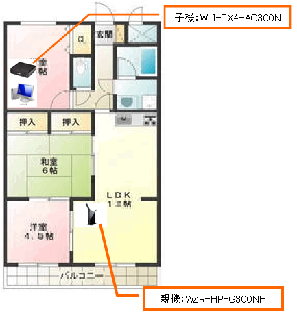 合わせて、ルーターの親機の設置位置とメインマシンの設置も示しております。