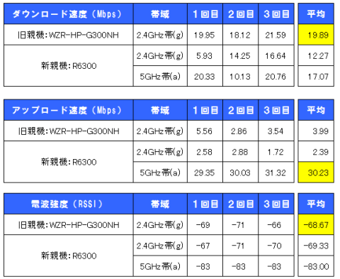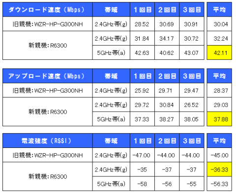 合わせて、R6300は2.4GHz帯(g)と5GHz帯(a)を各々確認しました。