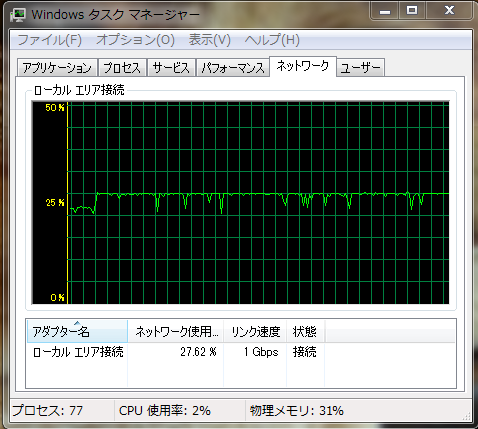 変更前が頑張っても200Mbps台の40%強度だったので大進歩です。
