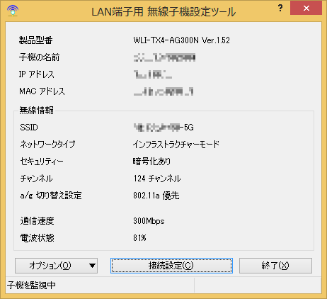 a接続で300Mbpsの電波強度81%を記録しています。