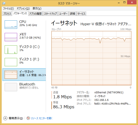 おかげさまで無線LANで最高速度の90Mbpsを見ることが出来ました!