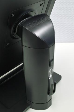 一方の背面側には、重たい本体を様々な角度で支える為のゴツいアームが取り付けられていますが、形状やエッジラインの表現を工夫してスリムに見せており、スタイリッシュとは言えませんが、一昔前のいかにも裏面といった無骨さを感じさせない仕上がりになっているところが好印象です。
