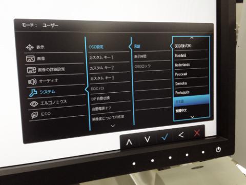 OSDメニューからは、輝度やコントラストの調整といった基本的な設定から用途に合わせた画面モード選択、入力モード選択、ライトセンサーやECOセンサーの設定など本製品ならではの特徴的な機能の設定ができます。このメニューの使いやすさは、タッチパッドによる入力のしやすさと、良く使う項目に簡単にアクセスできるようホットキーに登録することができるという点です。