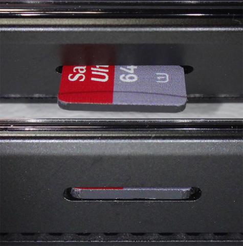 micro SDカードスロットは、カードを挿入すると、面一で収納されます。