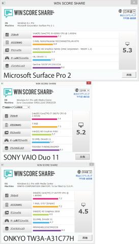 WIN SCORE SHAREでの比較では、Haswell世代のCore i5は、SandyBridge世代のCore i7の性能は超えているといえると思います。