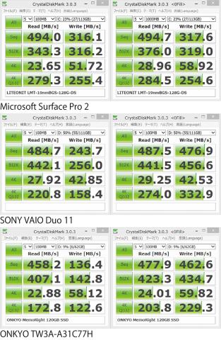 私が所有している Acer Aspire Timeline M3にも、Surface Pro 2同様 LITEONIT製の256GBのSSDが搭載されていますが、スコア自体は、Surface Pro 2に搭載されている、128GB SSDの方が高速です。