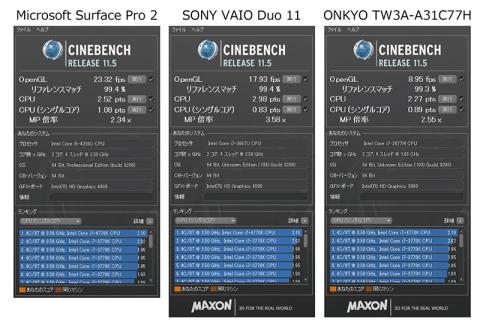 厚みは、SONY>ONKYO>Microsoftの順に、19.8mm , 18mm , 13.5mmとSurface Pro 2が、特に薄い仕上がりになっています。