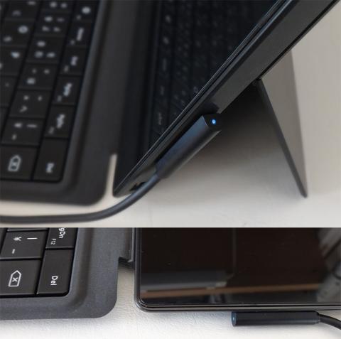 更に、充電用のコネクターが、マグネットクランプ方式で、脱着が容易な上、天地の向きに関係なく給電できるので、ACアダプターのケーブル取り回しがすこぶる便利です。