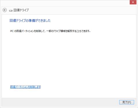 回復ドライブの作成が終了すると、回復パーテーションを削除することもできます。