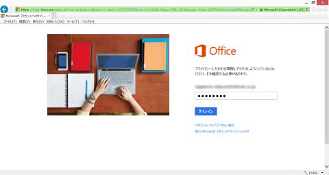 microsoftアカウントが表示されるので、パスワードを入力して、"サインイン"ボタンを押します。