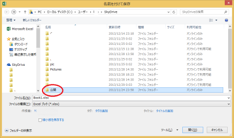 もし、「公開」フォルダがない場合はブラウザからSkyDriveにアクセスして作成することが可能です。