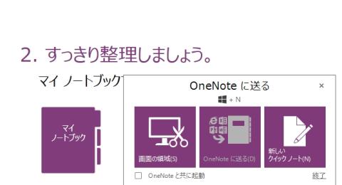 OneNoteでは本体と一緒に「画面領域を切り取りノートに貼り付け」」する為のソフトが一緒に起動するためノートへの資料の追加が簡単になっていました。