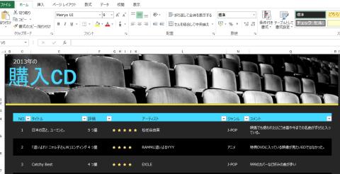 Officeのテンプレート一覧は大変魅力でしたが、個人的に面白いと思ったのは「映画リスト」というExcelのテンプレートで映画の発表された年、タイトル、評価(星5つ形式)などの様々な項目が入力できるものです。「映画リスト」ですが映画に限らずアニメ等で表を作ることも当然でき、その作った表をブログにあげれば手軽に自分のおすすめのアニメやCDを紹介する表ができてしまいます。