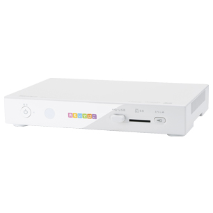 端子: HDMI端子、アナログ映像出力端子(1系統・RCAピン端子)、アナログ音声出力端子(1系統・RCAピン端子)、LAN端子、USB端子(USB2.0)、バックアップ機器端子(USB2.0)、SDカードスロット、電源12V端子