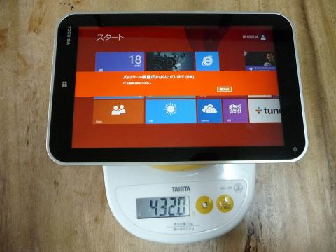 dynabook Tab VT484はカタログ値445gより軽い、432g