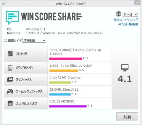 プロセッサが6.3ですと!!!! そしてグラフィックは4.1!!!