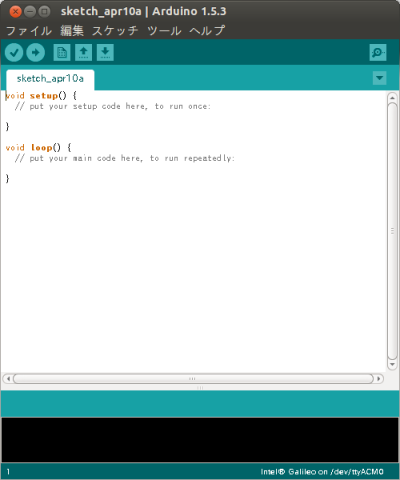 IntelからArduinoIDEをダウンロードしてきて起動します。