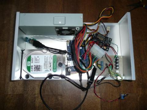FlexATX電源ではケースサイズが大きくなりすぎるので、外部12V電源とDC-DCコンバータとで電源供給するように仕様を変更。