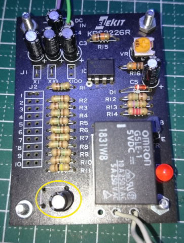 ただし、このタイマーを遅延して通電し、電源断でリレーが開くようにちょっとした改造を行う。