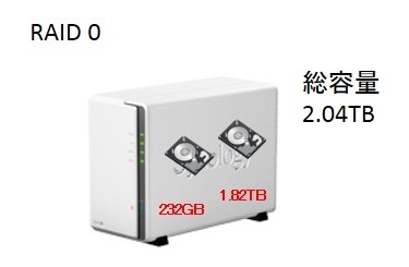 RAID0は、同じ容量が2台分の容量だと思っていました。でも、同じ容量となりました。