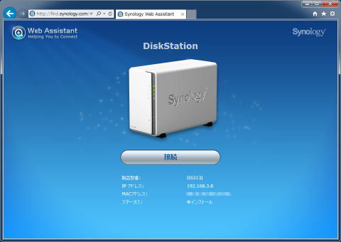 インストールガイドに書かれている通り「http://find.synology.com」にアクセスします。