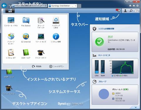 ※ 導入バージョンは DSM 4.3 (レビュー作成時最新)