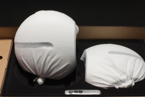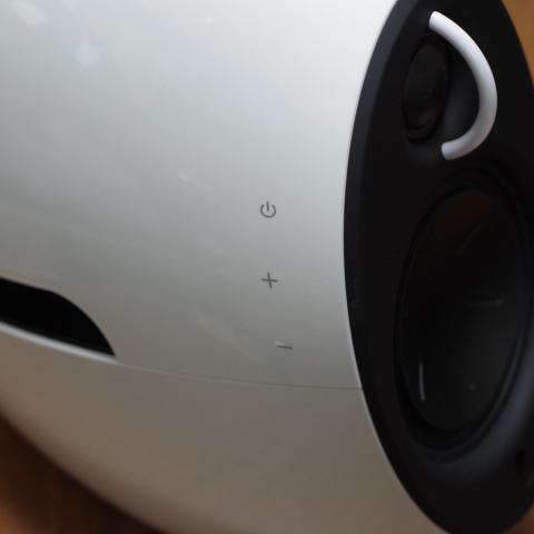 外観は、卵型というより碁石を立てたような特徴的なエンクロージャーの後ろ側に、切れ込みが入っています。この部分には『パッシブラジエター』という重低音を発生するユニットが上下に2つ搭載されています。