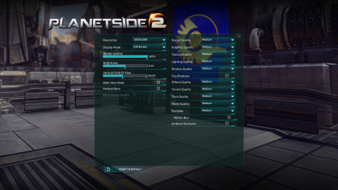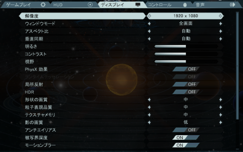 ※設定は初期設定から「ウィンドウモード」の「ウィンドウモード表示」を「フルスクリーン表示」に変更しました。