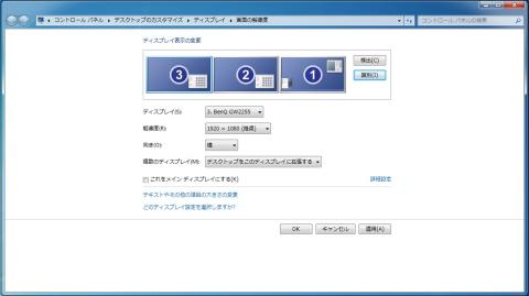 3個の画面を1個の画面として認識させて超ワイドディスプレイとして