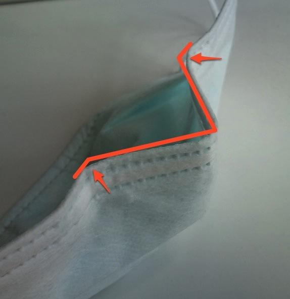 鼻の両脇を押さえる位置(矢印で示したところ)で大きく違いが出てきますが、私の場合はわりと両端に近いところで折り曲げると格段に曇りにくくなりました。