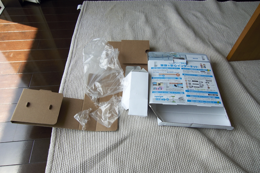 ルーターに電源を接続して、フレッツ光のルーターとLANケーブルで接続するだけでした。