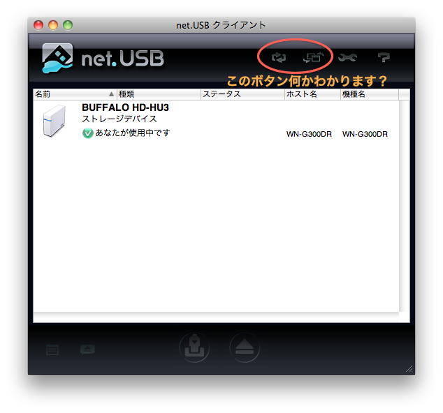 ・net.USBクライアントの各ボタンイメージが何をするボタンなのかわかりづらい。