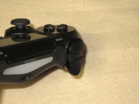 DUALSHOCK 3と比べるとタッチパッドを配置する関係でアナログレバーの間隔が6mm程度広くなっていますが違和感はありません。手前側面にヘッドセット接続用端子も用意されています。