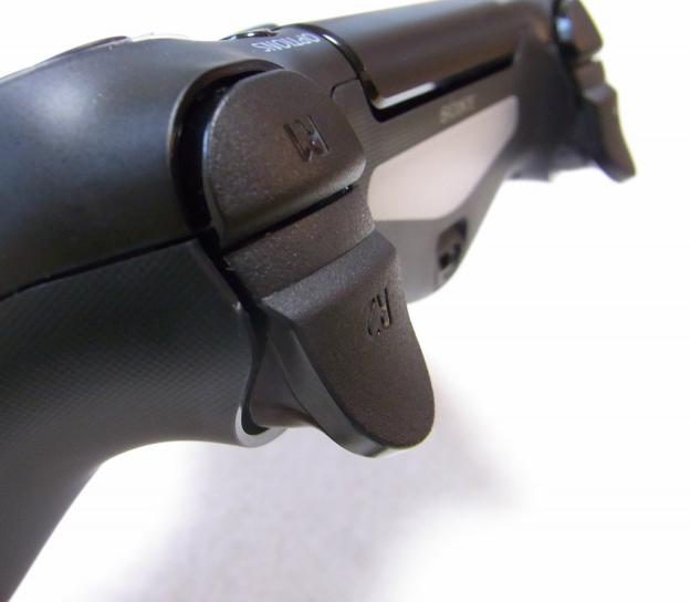 L2/R2ボタンは表面が軽く反っていて指掛かりが良く、ボタンが軽いので力を入れなくても押すことができる。