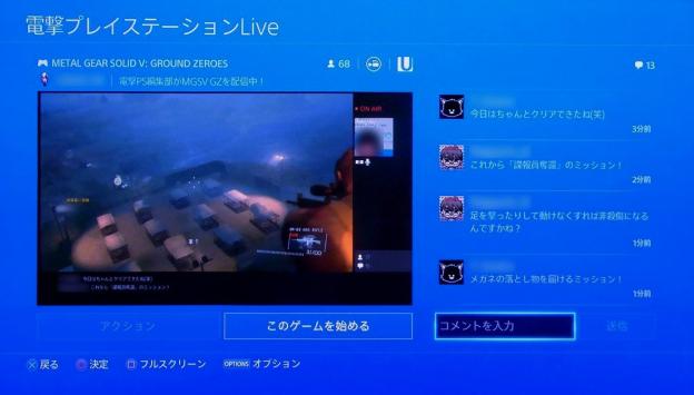 配信者がPlayStation Cameraを使っていればカメラ映像と音声も配信されるので、まさにライブ映像を見ている感覚だ。