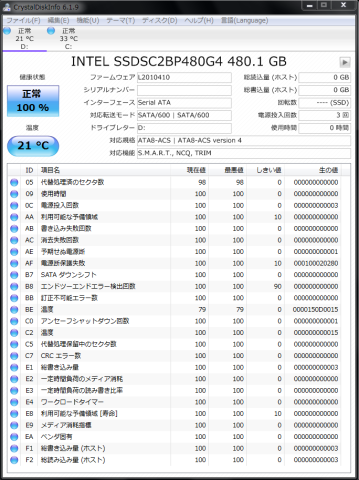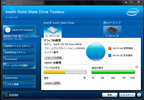 電源断のエラーが出ているとはいえ、それ以外はほぼ正常。速度も低下しましたけどHDDに比べれば十分早いので・・・何か使えるものを探したいですねー。
