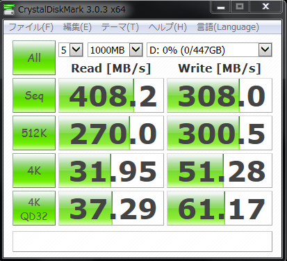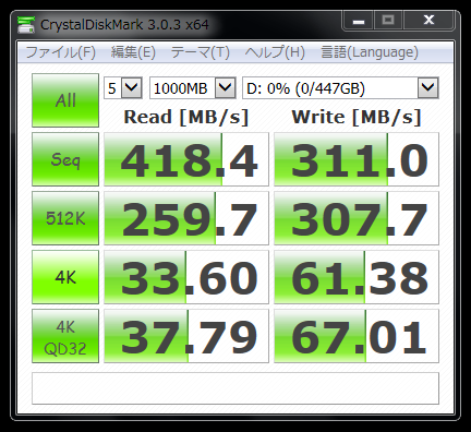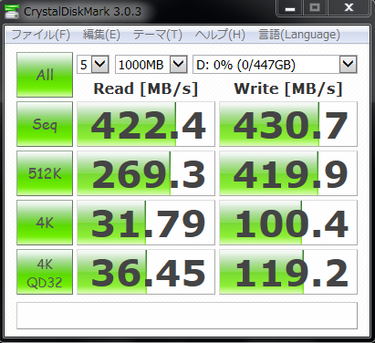 本命のほうは速度がかなり出ています。512KのWriteなど圧倒的ですね!