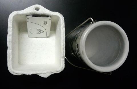 冷凍食品は-18℃が適当とされているのでちょうど冷凍食品程度ですね。今回は大型冷蔵庫の冷凍室に1時間入れてみました。直接だと氷とかの影響がありますので薄手のビニールに入れてあります。