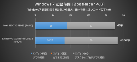 好敵手ともいえるSAMSUNG SSD840 Proですが、ここでは単体ドライブではintel SSD730をわずかに上回るスコアを叩き出しています。