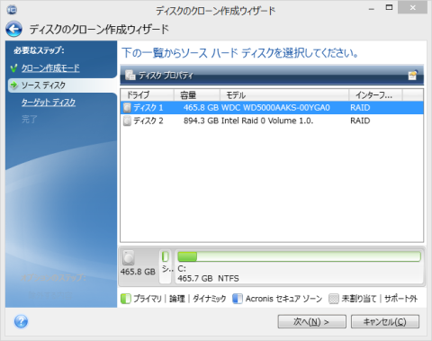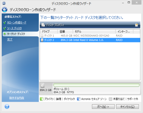 AcronisまたはEaseUSのツールを使ってパーティションコピー→RAIDドライブを外してHDD1台で起動確認