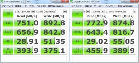 RAID0構成になれば、負荷が分散され2倍とはいかないものの、効果が現れています。