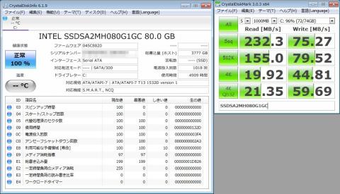 ストレージ:Intel X25-M SSDSA2MH080G1GC