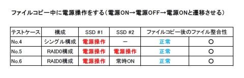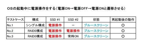 テストケースの様子(RAID0構成で、両方の電源操作)