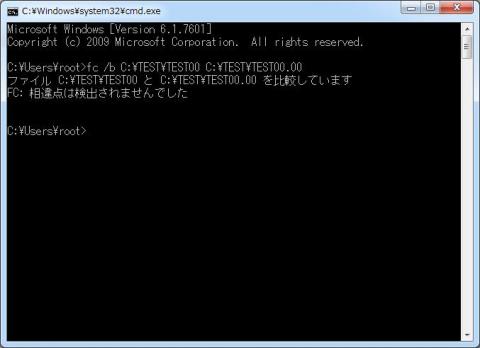 ③FCコマンドを使用して、①と②が同じものであることを確認する